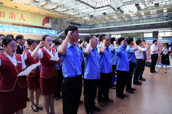 本次活動以鐵路安全法律法規(guī)咨詢服務為主要內容,國家鐵路局、北京鐵路局設立咨詢臺,現場對旅客和職工進行鐵路安全法律法規(guī)和客運安全服務質量等咨詢活動。北京鐵路局安全總監(jiān)帶領干部職工集體進行了安全承諾宣誓,站段長代表宣讀了安全生產責任承諾書,北京西站客運服務明星王琳娜向全局鐵路職工發(fā)出了積極參與“安全生產月”活動的倡議。活動期間,向基層單位和旅客贈發(fā)了安全法規(guī)標準、安全知識書籍圖冊等安全文化宣傳品,開展了安全主題大簽名、安全文化宣傳展覽、客運服務質量問卷調查等活動。