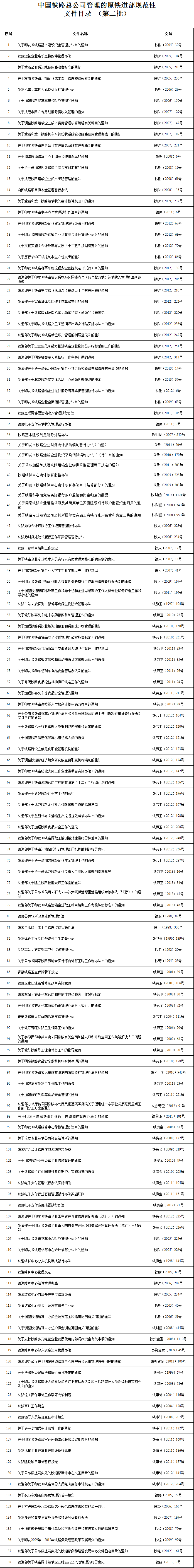 附件:中國鐵路總公司管理的原鐵道部規范性文件目錄 (第二批)
