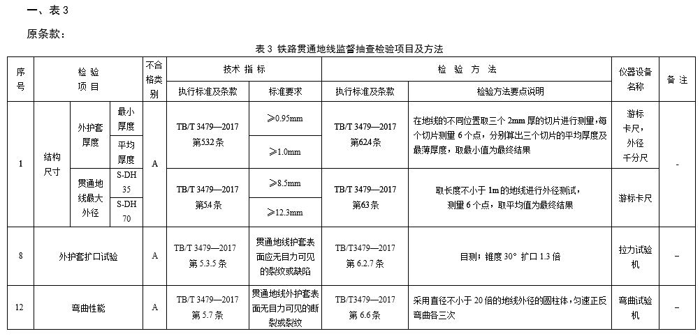 《鐵路貫通地線-鐵路專用產品質量監督抽查檢驗實施細則》(GTCC-001-2018)更正內容