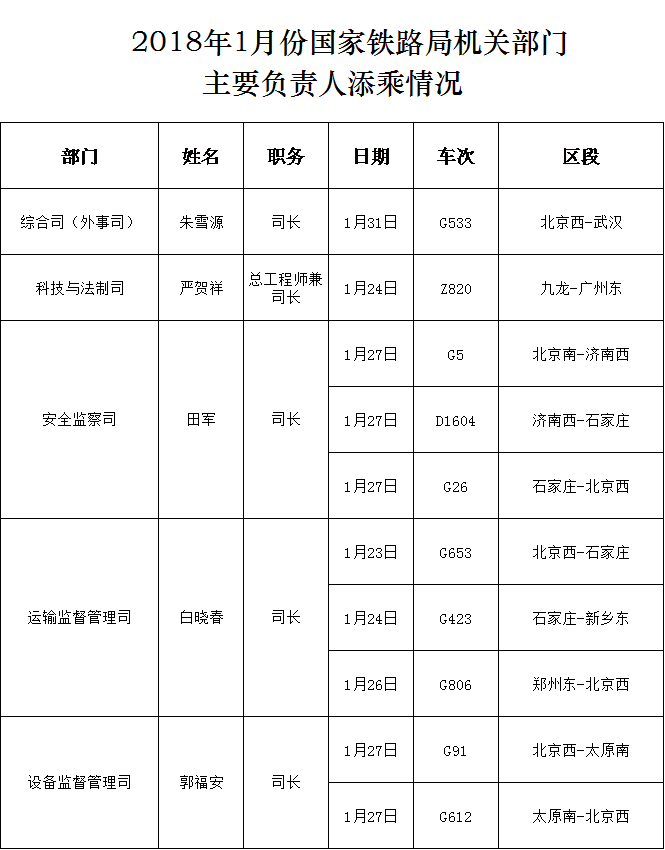下一篇:2018年1月份國家鐵路局機關部門主要負責人添乘情況
