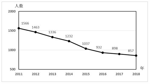 “十二五”以來鐵路交通事故死亡人數(shù)變化趨勢圖