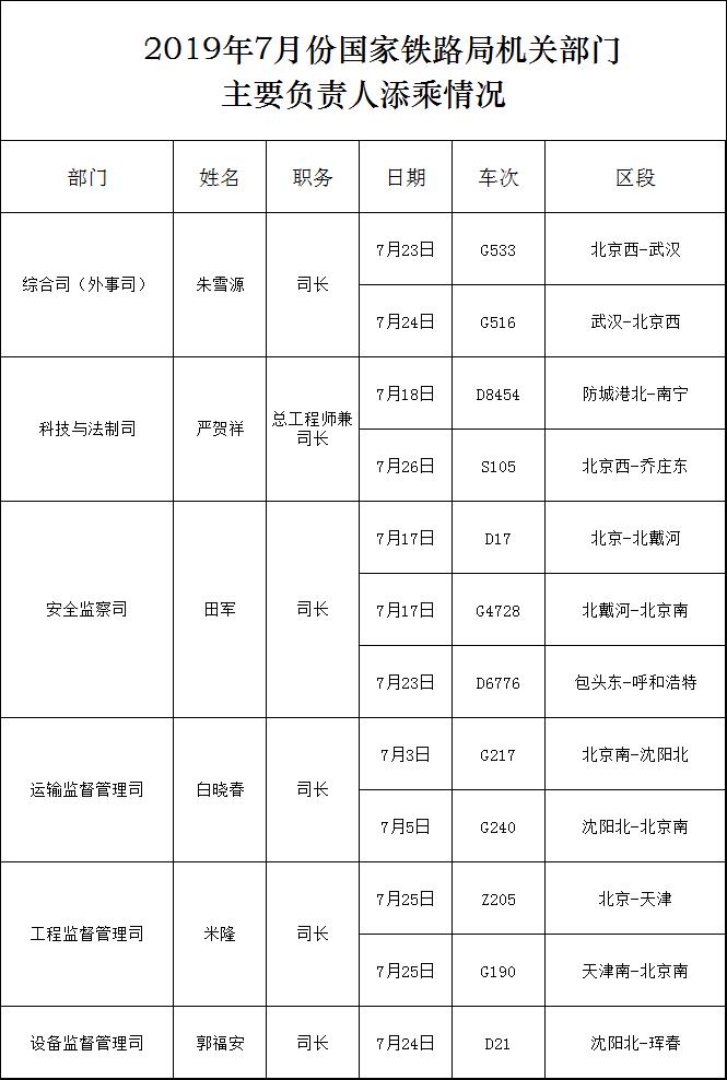 下一篇:2019年7月份國家鐵路局機關部門主要負責人添乘情況