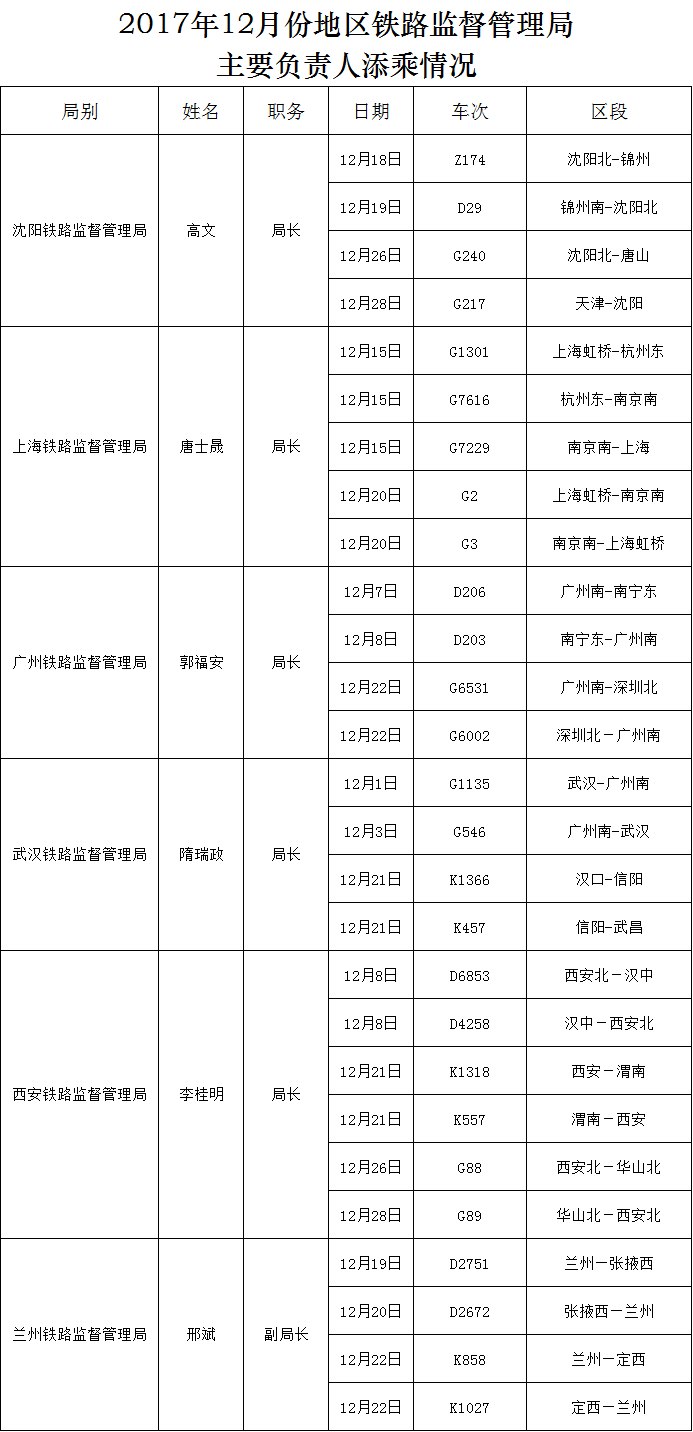 下一篇:2017年12月份地區(qū)鐵路監(jiān)督管理局主要負(fù)責(zé)人添乘情況