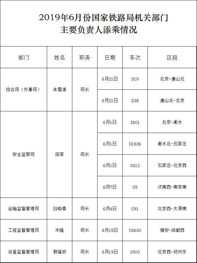 上一篇:2019年6月份國家鐵路局機關部門主要負責人添乘情況