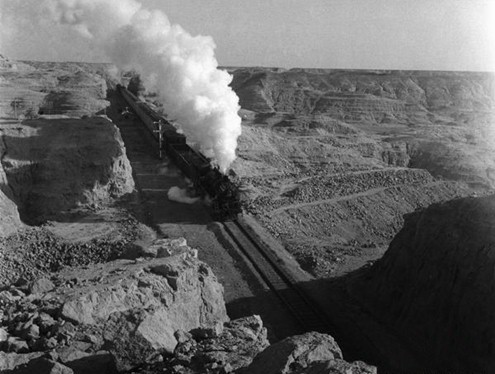 1962年12月9日,蘭新鐵路建成通車(chē),列車(chē)通過(guò)百里風(fēng)區(qū)。