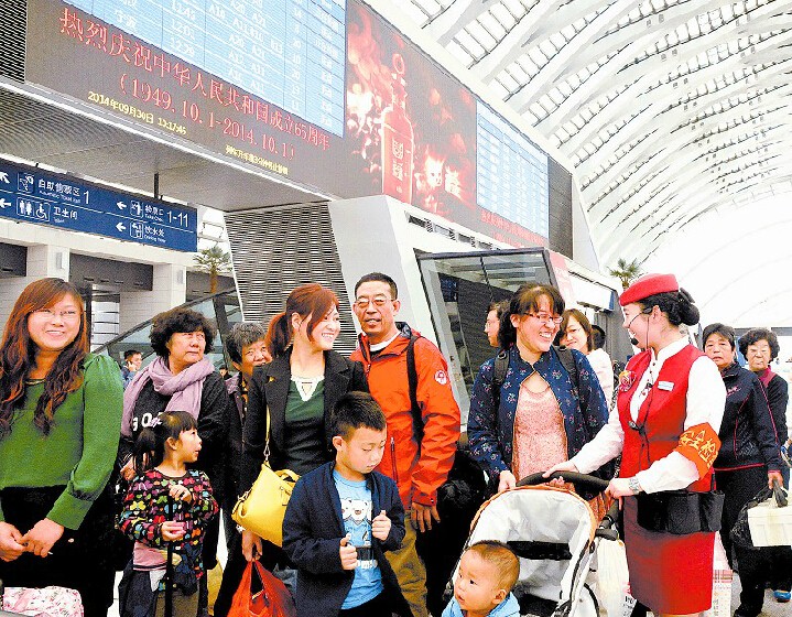 客運員向旅客講解自動檢票閘機(jī)使用方法,并提示出行注意事項。
