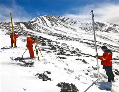 2月18日,在四川康定折多山,中鐵二院測繪院工作人員在進行川藏鐵路勘察。張文 向春來攝影報道