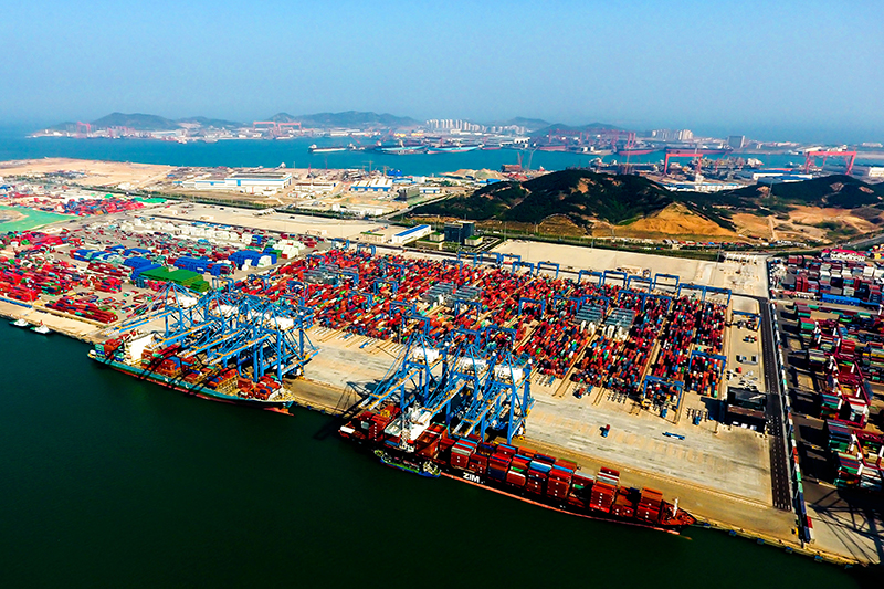 青島港前灣自動化集裝箱碼頭(2018年5月4日攝,無人機照片)。
