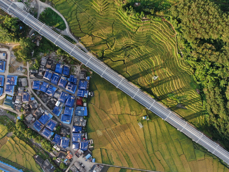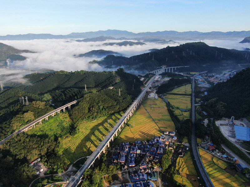 中老鐵路國內段北起云南省玉溪市,途經普洱市、西雙版納傣族自治州,最終抵達中國與老撾邊境口岸城市磨憨,正線全長508公里。空中鳥瞰,穿山嶺、跨江河、過田園的中老鐵路景色壯美。