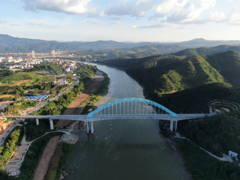 9月10日在云南西雙版納傣族自治州景洪市境內拍攝的中老鐵路橄欖壩瀾滄江大橋(無人機照片)。