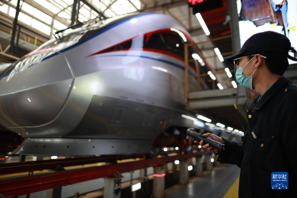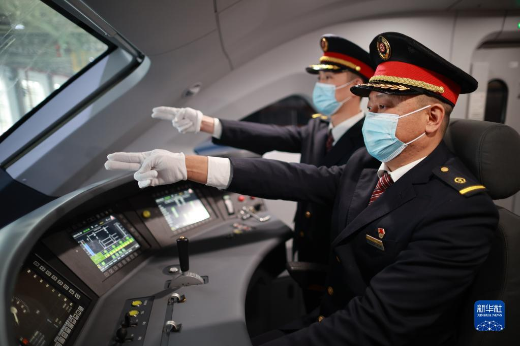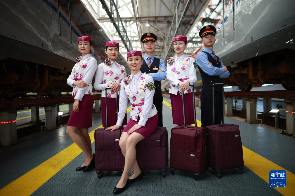 3月29日,擔(dān)任新建貴陽環(huán)線鐵路首發(fā)列車值乘工作的司機(jī)、乘務(wù)員、隨車機(jī)械師等在貴陽亮相。貴陽環(huán)線鐵路全長113公里,將于近日正式開通運(yùn)營。