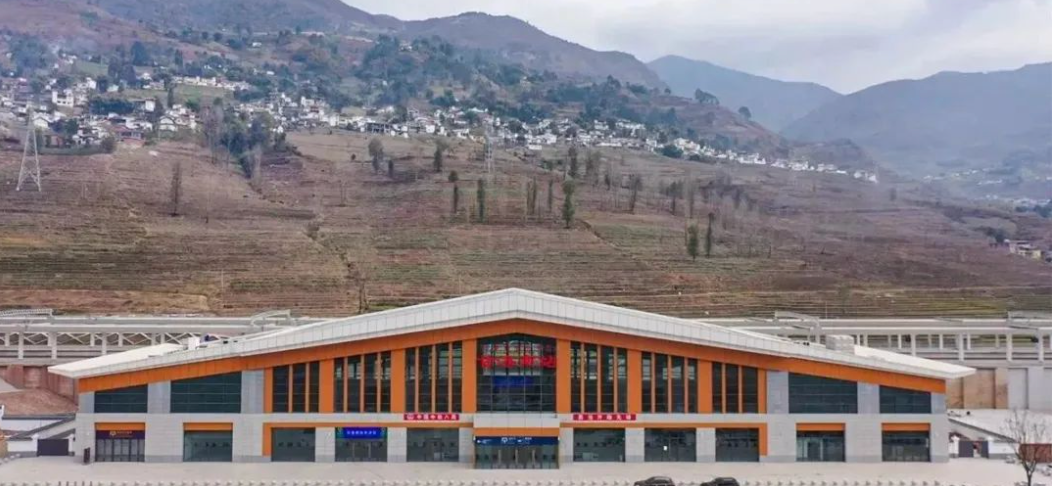 喜德西站位于涼山彝族自治州喜德縣新橋村。站房以“川南腹地,彝風彝彩”為設(shè)計理念,將彝族特色牛羊角元素融入屋頂設(shè)計。