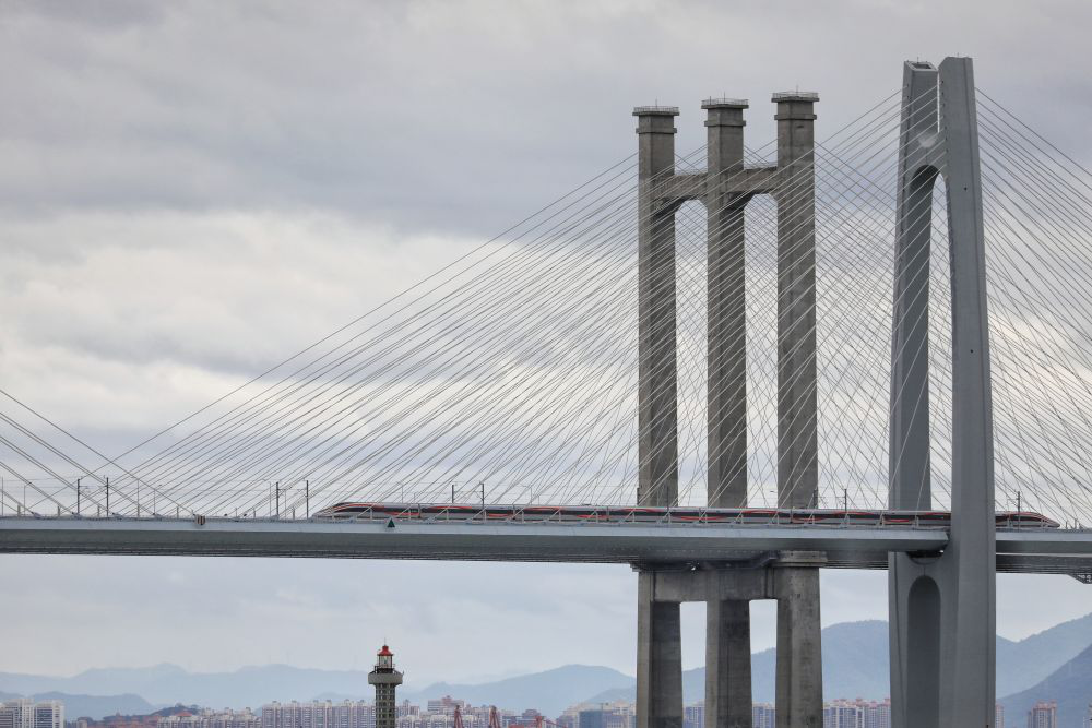 9月4日,“復興號”智能動車組列車行駛在福廈高鐵泉州灣跨海大橋上。