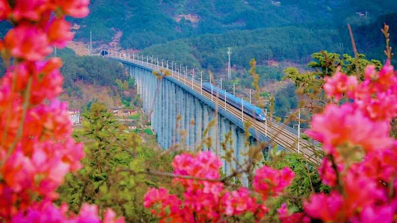 動(dòng)車穿越大別山 鐵路長廊美如畫