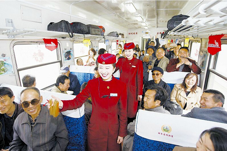 以“城鄉文化列車”命名的7504/7503次列車蜿蜒行駛在蘭州東部山大溝深的黃土山中,像一條流動的“希望之舟”,帶領沿線人民群眾一起奔向新生活。神州大地上,像這樣溝通城鄉的列車還有很多很多。