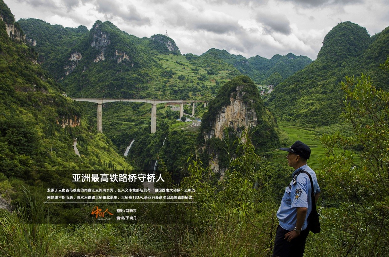 發源于云南省馬雄山的南盤江支流清水河,在興義市北部與具有“祖國西南大動脈”之稱的南昆線不期而遇,這便是清水河鐵路大橋的由來。183米高的清水河大橋,是亞洲最高水泥澆筑鐵路橋梁。2006年,48歲的楊福明來到興義車站派出所清水河西警務區,在大山深處開始自己的守橋工作。