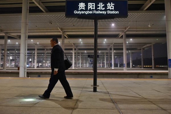 陳輝進入貴陽北站站臺。
