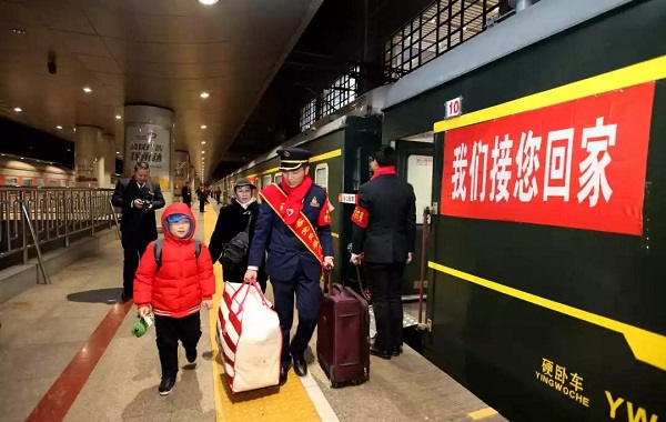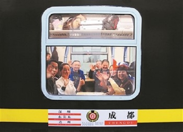 旅客在加開列車上揮手致意。(來源:人民鐵道網)