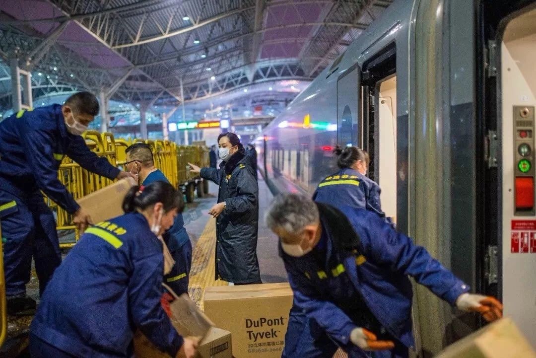 1月25日,大年初一凌晨,江、浙援鄂醫療隊在合肥站緊急轉運換乘,40分鐘800余件防疫物資和246名醫務人員全部到位。中國鐵路上海局集團公司 況士 攝