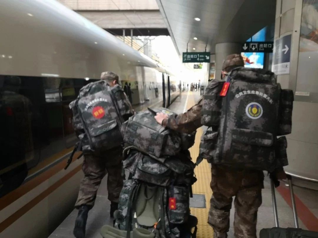 2月1日,部隊醫療隊在北京西站乘坐北京客運段擔當乘務的動車組列車馳援武漢抗擊疫情。中國鐵路北京局集團公司 王博軒 攝