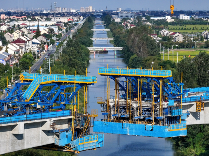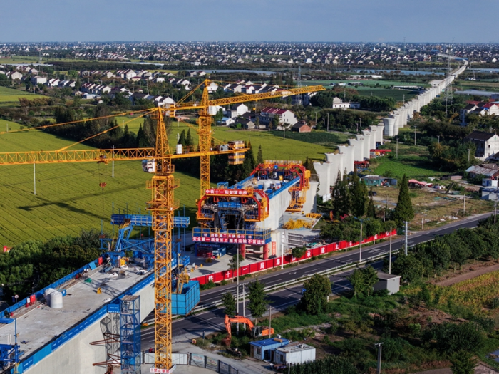 國慶期間,在滬渝蓉高鐵江蘇泰州段建設施工現場,勞動者堅守崗位,確保工程建設穩步推進。滬渝蓉高鐵線路總長約2100公里,全線設計時速350公里,是國家“八縱八橫”高鐵骨干通道之一。