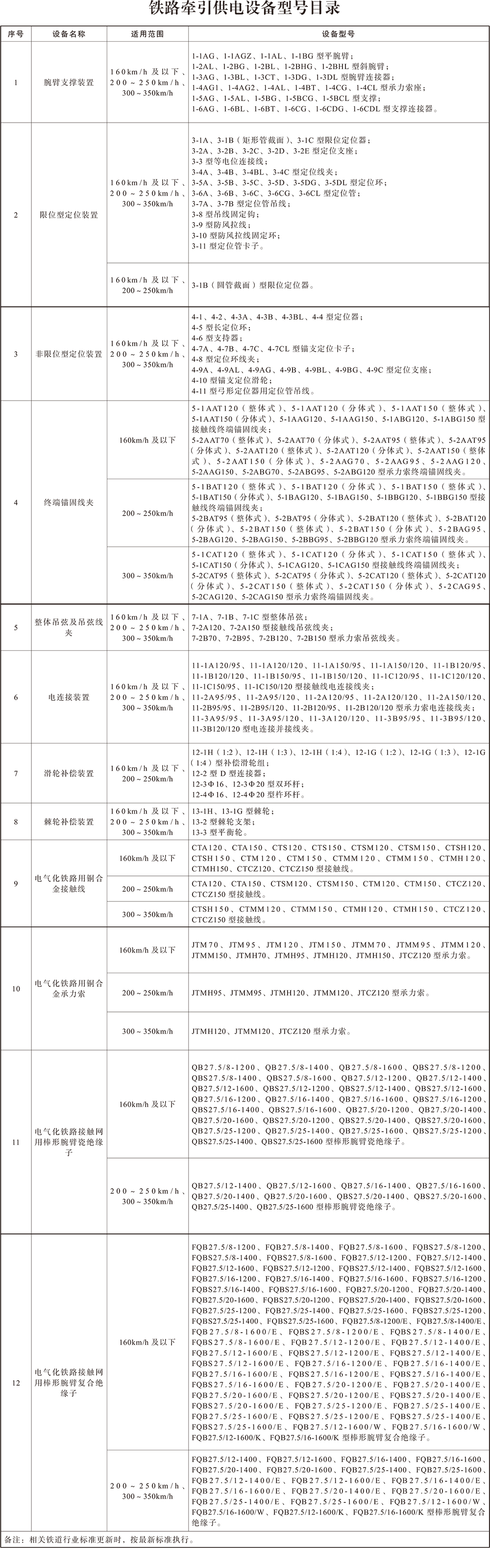 為進一步服務鐵路行業發展,加強鐵路設備源頭質量安全管理,保障鐵路運營安全,明確鐵路牽引供電設備包含的設備名稱、適用范圍、設備型號,現將《鐵路牽引供電設備型號目錄》印發給你們,請遵照執行。