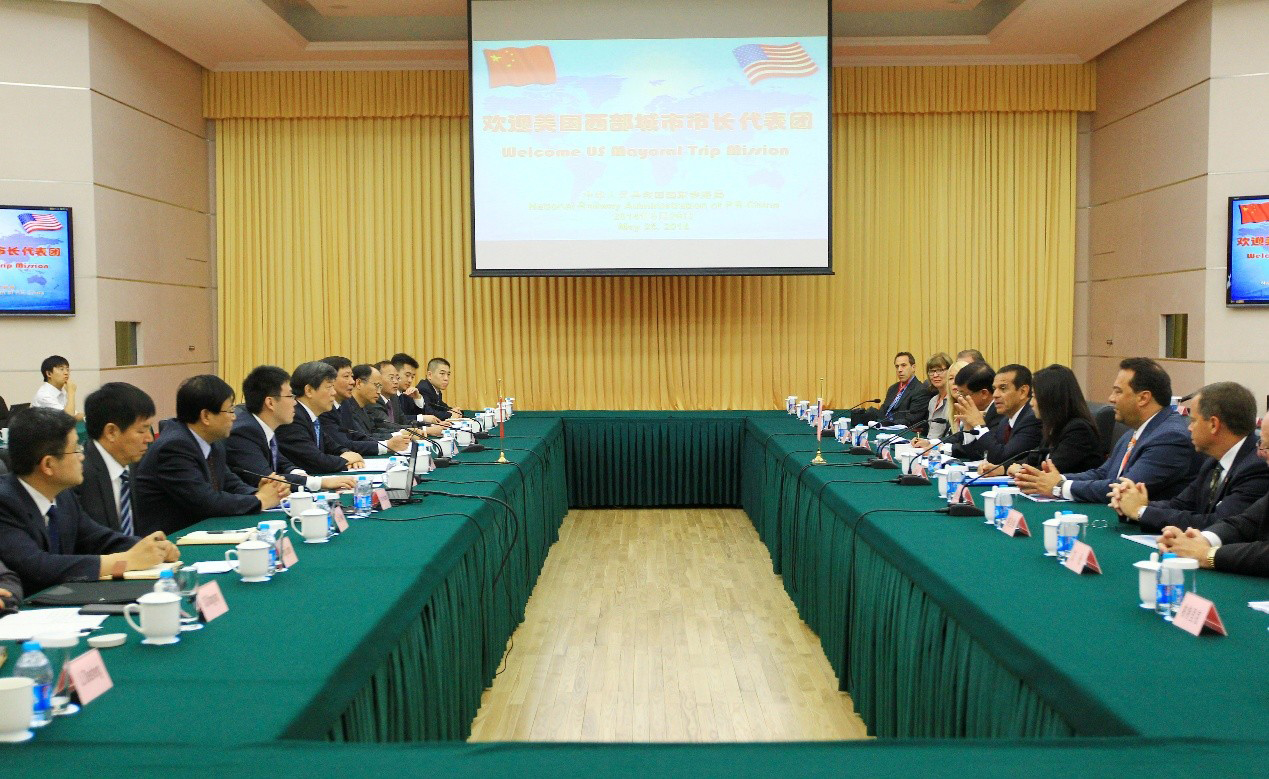 5月26日上午,交通運輸部副部長、國家鐵路局局長陸東福在北京會見了以美國加利福尼亞州洛杉磯市前市長安東尼·維拉萊戈薩為團長的美國西部市長訪華團。