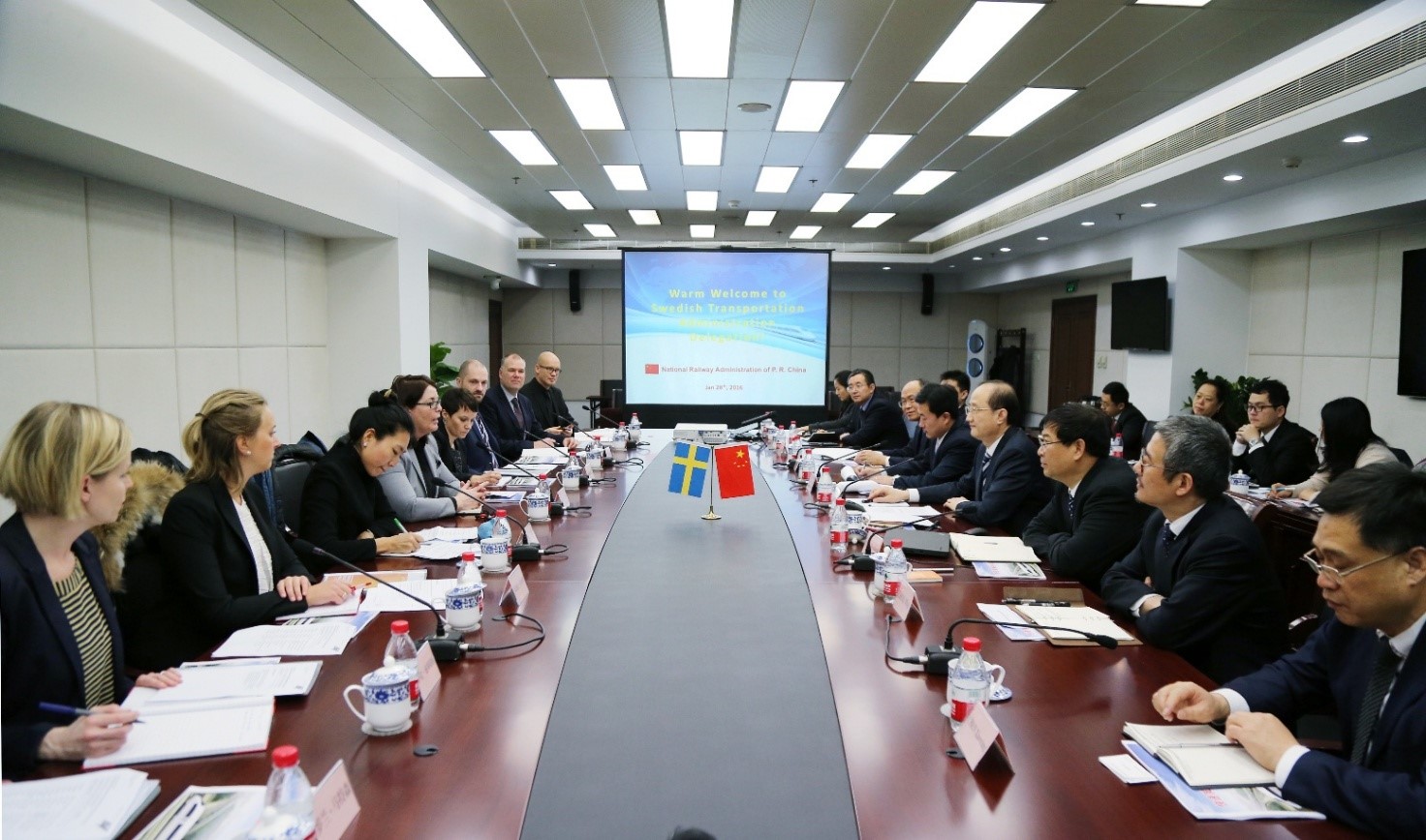 1月28日,國家鐵路局黨組成員鄭健在北京主持召開中國-瑞典鐵路交流座談會。國家鐵路局、國家開發銀行、中國鐵建股份有限公司、中國中車股份有限公司、中鐵第四勘察設計院集團公司代表與瑞典交通管理署、瑞典投資貿易委員會和瑞典駐華使館代表就高速鐵路規劃設計、技術標準、施工建造、裝備制造、經濟社會效益等問題進行了深入的交流。