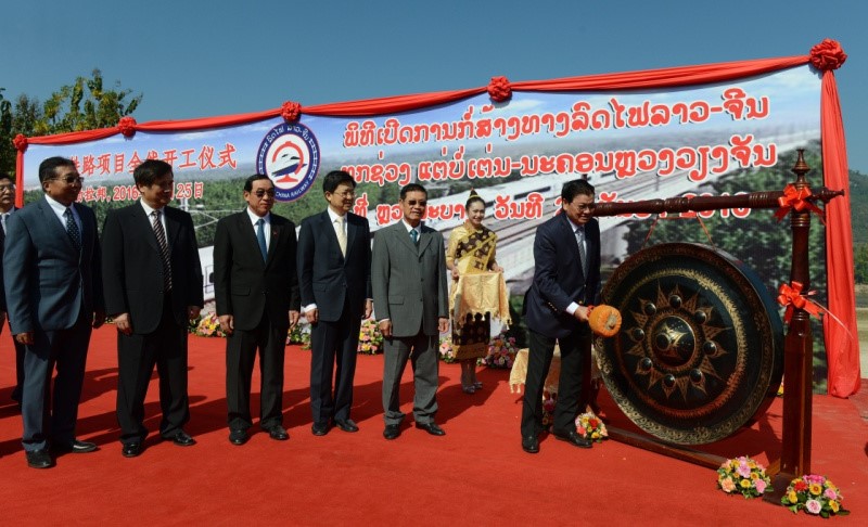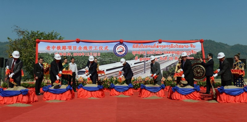 12月25日,中老鐵路全線開工儀式在老撾瑯勃拉邦舉行,老撾總理通倫和中國駐老撾大使關華兵等出席開工儀式。中老鐵路北起兩國邊境磨憨—磨丁口岸,南至萬象,全長417公里,為Ⅰ級單線鐵路,設計時速160公里/小時,預計建設期為5年。中老鐵路建成后將與中國鐵路網直接連通,對中國與東盟鐵路互聯(lián)互通具有重要意義。圖為開工儀式現(xiàn)場。