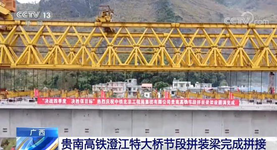 貴南高鐵澄江特大橋節段拼裝梁完成拼接
