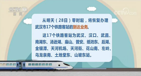 28日起恢復(fù)辦理武漢17個(gè)鐵路客站到達(dá)業(yè)務(wù)