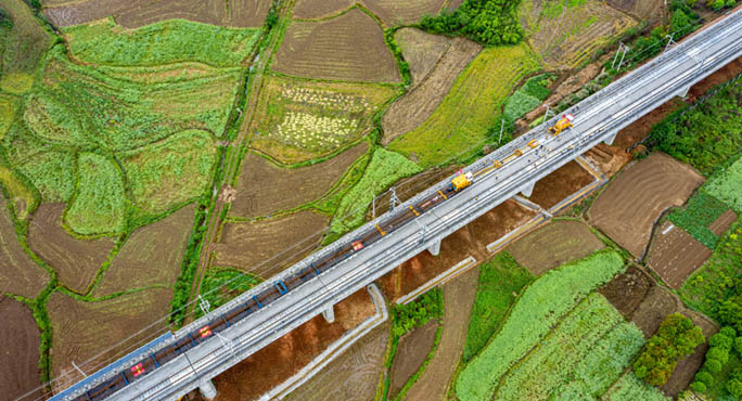 中老鐵路國內段鋪軌施工忙