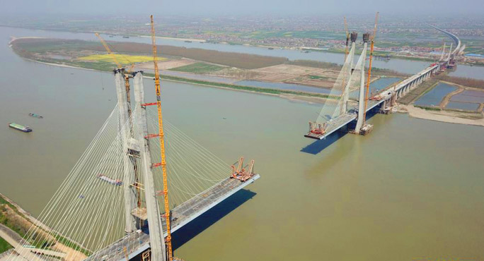 安九鐵路鳊魚洲長江大橋主橋主塔全部封頂