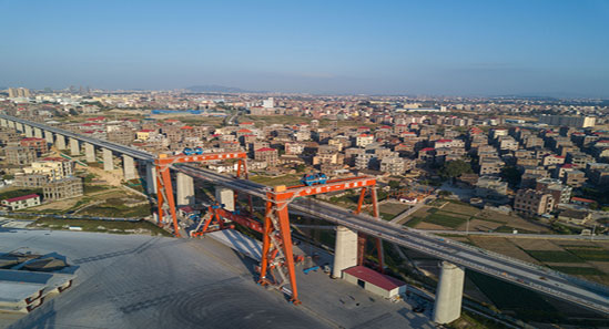 新建福廈鐵路烏龍江大橋首榀鋼箱梁架設(shè)成功