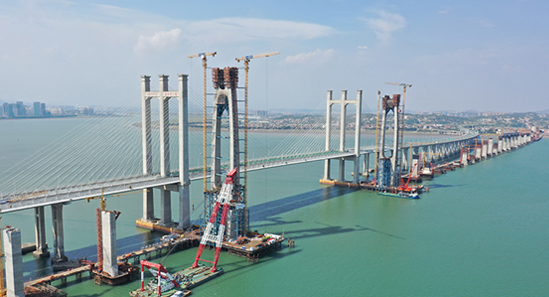 新建福廈鐵路泉州灣跨海大橋首榀鋼箱梁順利吊裝