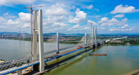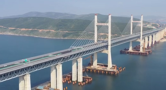 廣州南沙港鐵路跨西江特大斜拉橋完成最后一塊鋼箱梁吊裝