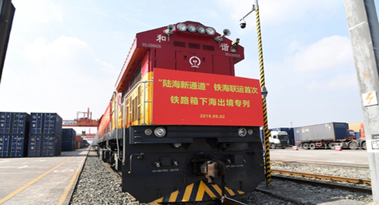 “陸海新通道”鐵海聯運首次鐵路箱下海出境專列發車