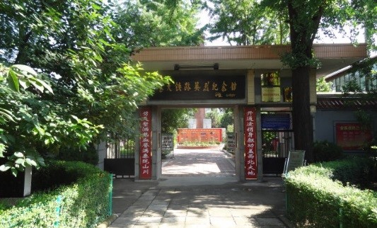 1949年7月中國人民解放軍西北野戰軍王震指揮的第一兵團,許光達,王世泰指揮的第二兵團,周士第指揮的十八兵團,楊得志指揮的十九兵團,在彭德懷司令員,政委習仲勛,副司令張宗遜的指揮下擊潰了胡宗南,馬鴻逵,馬步芳的國民黨軍隊,解放了寶雞市。1950年春以十九兵團64軍為主力的解放軍受命進行寶天鐵路的修建工程。在沒有施工機械,完全是靠鋼釬,鐵鍬,炸藥,人工施工的極其簡陋艱難,地質條件極其復雜的條件下,只用了8個月的時間就基本完成了全線153公里和一百多座隧洞的土石方工程,當年秋冬朝鮮戰爭爆發,參加寶天鐵路建設的64軍又奉命奔赴朝鮮抗美援朝的戰場。為了紀念在修建寶天鐵路中犧牲的五十六位解放軍烈士,1952年修建了寶天鐵路烈士紀念碑,碑面朝向寶天鐵路方向。1980年寶雞市人民政府增設了紀念館,并由習仲勛題寫了館名:“寶天鐵路英烈紀念館”。