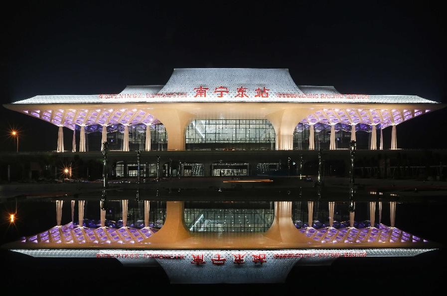 與南廣高鐵同日投入運營的新建南寧東站夜景