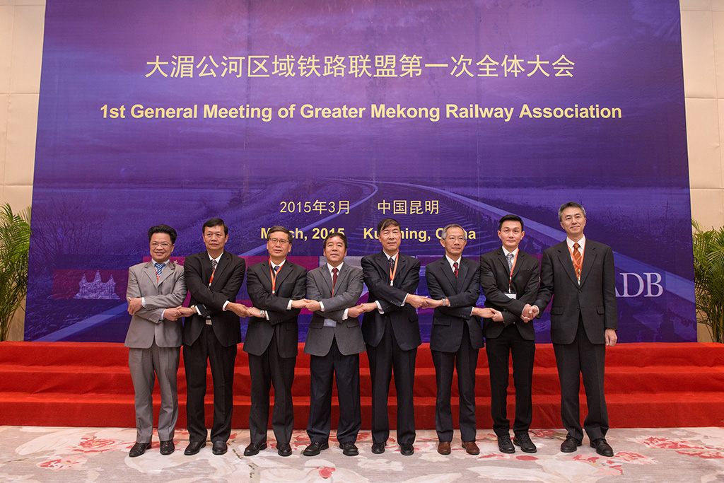 3月11日,大湄公河區域鐵路聯盟(GMRA)第一次全體大會在我國云南昆明舉行。中國、柬埔寨、老撾、緬甸、泰國、越南等區域鐵路聯盟6個成員國以及亞洲開發銀行的代表出席了會議。國家鐵路局副局長、董事會中方成員傅選義(左五)率中國代表團出席。