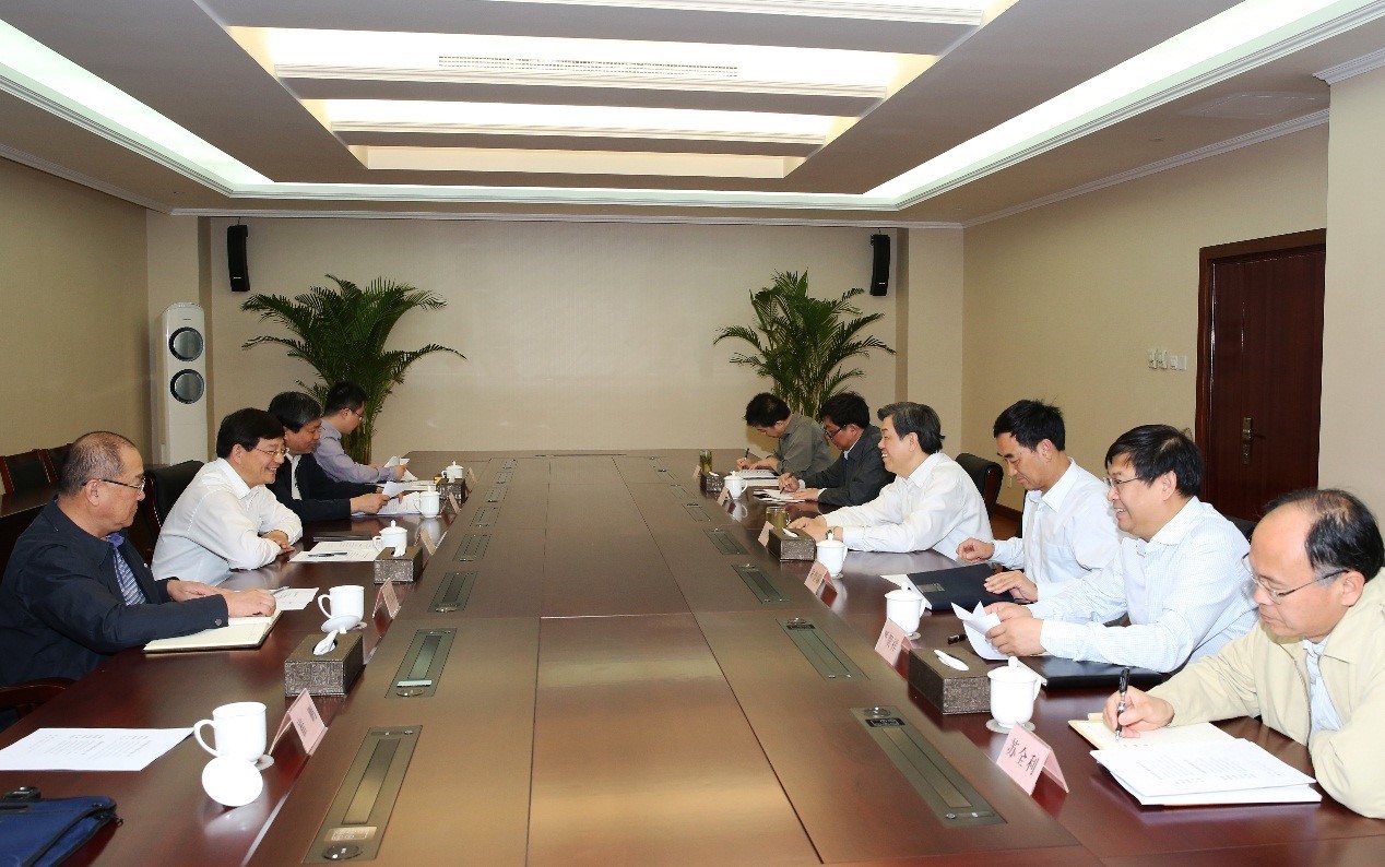5月14日上午,國家鐵路局局長陸東福(右四)與來局調研的國家發展改革委副主任胡祖才(左二)一行進行座談,雙方就鐵路發展規劃、技術標準、科技創新、工程質量安全監管及鐵路“走出去”等工作深入交換了意見。