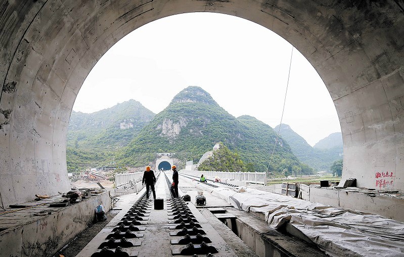 目前,滬昆高鐵安順段主體工程已完成95%,附屬工程正在加緊建設。滬昆高鐵安順段全長140公里,設平壩南、安順西、關嶺3個車站。圖為滬昆高鐵安順段河上堡隧道施工現場。 圖片攝影:新華社記者 盧維