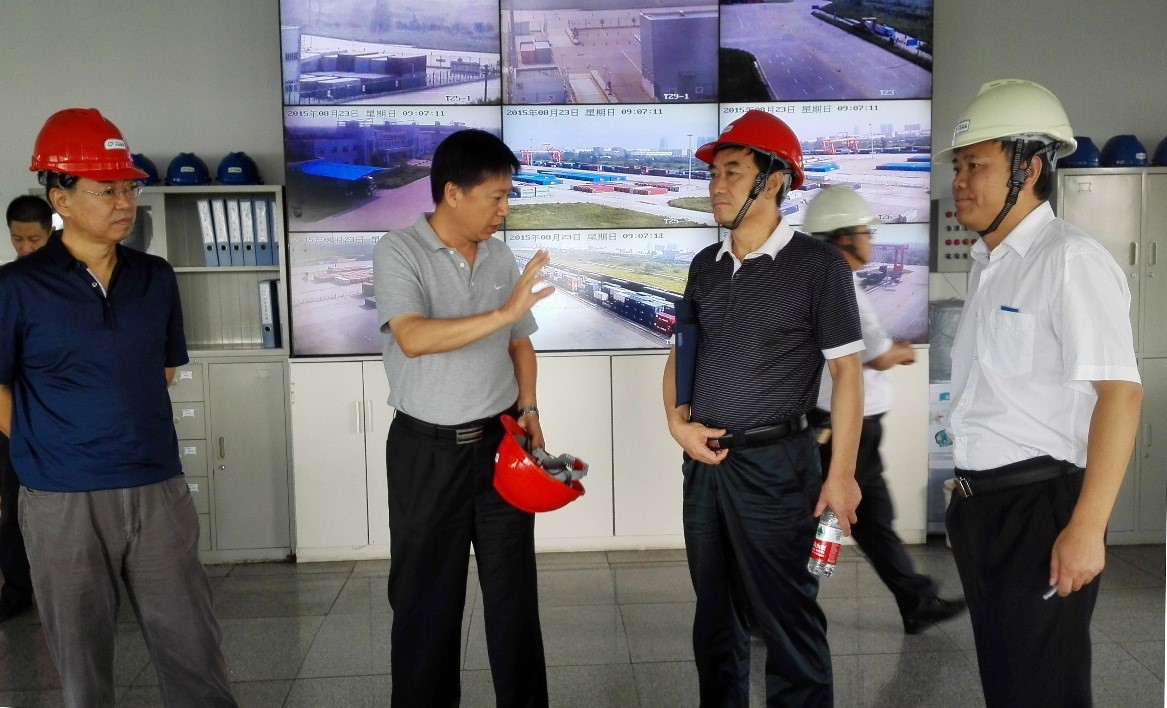局黨組成員、副局長朱望瑜(右二)檢查中鐵聯(lián)合國際集裝箱有限公司武漢中心站。