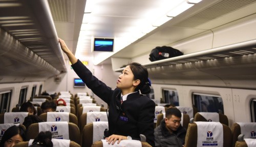 1月26日,西側始發站吉林站的“動姐”們準備登車上崗。