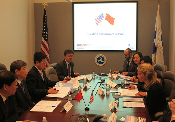 當地時間4月16日至23日,國家鐵路局局長陸東福應邀率團訪問加拿大、美國。訪問期間,分別與加拿大交通部副部長邁克爾˙基南,加拿大運輸署、加拿大運輸安全委員會等單位負責人舉行了會談;與美國聯邦鐵路署署長薩拉˙范博格共同主持了鐵路工作組會議。中方系統介紹了中國鐵路規劃、建設和運營情況以及中國高速鐵路發展成就和優勢,就鐵路改革發展、行業監管、市場化運營、高速鐵路合作以及推動鐵路合作交流機制化建設等問題與外方深入交換了意見。中國駐加拿大使館、駐美國使館有關人員參加了會議。陸東福一行還到加拿大國家研究理事會、加拿大鐵路客運公司、加拿大國家鐵路公司、加拿大溫哥華太平洋中央車站、加拿大蒙特利爾至渥太華客運列車以及美國聯合太平洋鐵路公司芝加哥貨運樞紐等地考察調研。圖為陸東福局長(左三)與加拿大交通部副部長邁克爾˙基南(右一)會談。