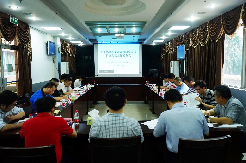 一是加強(qiáng)汛期高鐵防洪安全檢查。受超強(qiáng)厄爾尼諾影響,今年轄區(qū)內(nèi)防洪形勢十分嚴(yán)峻。廣州鐵路監(jiān)管局把高鐵防洪安全作為履職監(jiān)管的重要任務(wù),超前謀劃部署,制定工作方案,深入一線開展監(jiān)督檢查。同時(shí),督促指導(dǎo)轄區(qū)內(nèi)運(yùn)輸企業(yè)和工程建設(shè)單位,強(qiáng)化隱患排查、行車組織、物資儲(chǔ)備、應(yīng)急管理,加大物防、技防、人防力度,確保了進(jìn)入汛期后高鐵運(yùn)輸安全和工程建設(shè)安全。二是開展高鐵移動(dòng)設(shè)備和固定設(shè)備調(diào)研檢查。廣州監(jiān)管局成立了高鐵行車設(shè)備質(zhì)量安全調(diào)研檢查組,深入廣鐵集團(tuán)、南寧局機(jī)關(guān),以及動(dòng)車段(所)、高鐵工務(wù)段等單位,圍繞安全責(zé)任落實(shí)、規(guī)章制度、技術(shù)標(biāo)準(zhǔn)、檢修規(guī)程、應(yīng)急處置等方面,與企業(yè)人員共同研討,分析問題,研究對(duì)策,提升高鐵設(shè)備源頭質(zhì)量,提升檢修能力,提升故障排查和處置水平。三是加大高鐵路外安全環(huán)境整治力度。廣州鐵路監(jiān)管局積極組織協(xié)調(diào)地方政府部門、鐵路運(yùn)輸企業(yè),多次召開專題會(huì)議,明晰各方職責(zé)分工,加大路外安全環(huán)境排查整治、“打非治違”專項(xiàng)行動(dòng)和安保區(qū)劃定工作力度。截至目前,在各級(jí)地方政府的大力支持下,會(huì)同鐵路運(yùn)輸企業(yè)、建設(shè)單位完成轄區(qū)內(nèi)高鐵安保區(qū)劃定3452公里,完成率81%,剩余464公里預(yù)計(jì)年底前全部完成。四是推進(jìn)高鐵安全防護(hù)工程建設(shè)。督促轄區(qū)運(yùn)輸企業(yè)加快建立“人防、物防、技防”相結(jié)合的高鐵安全防護(hù)體系,實(shí)現(xiàn)高鐵重點(diǎn)部位實(shí)時(shí)監(jiān)控全天候、全覆蓋。圖為廣州鐵路監(jiān)管局組織轄區(qū)地方政府有關(guān)部門和鐵路運(yùn)輸企業(yè)召開高鐵安全保護(hù)區(qū)劃定推進(jìn)工作會(huì)議。