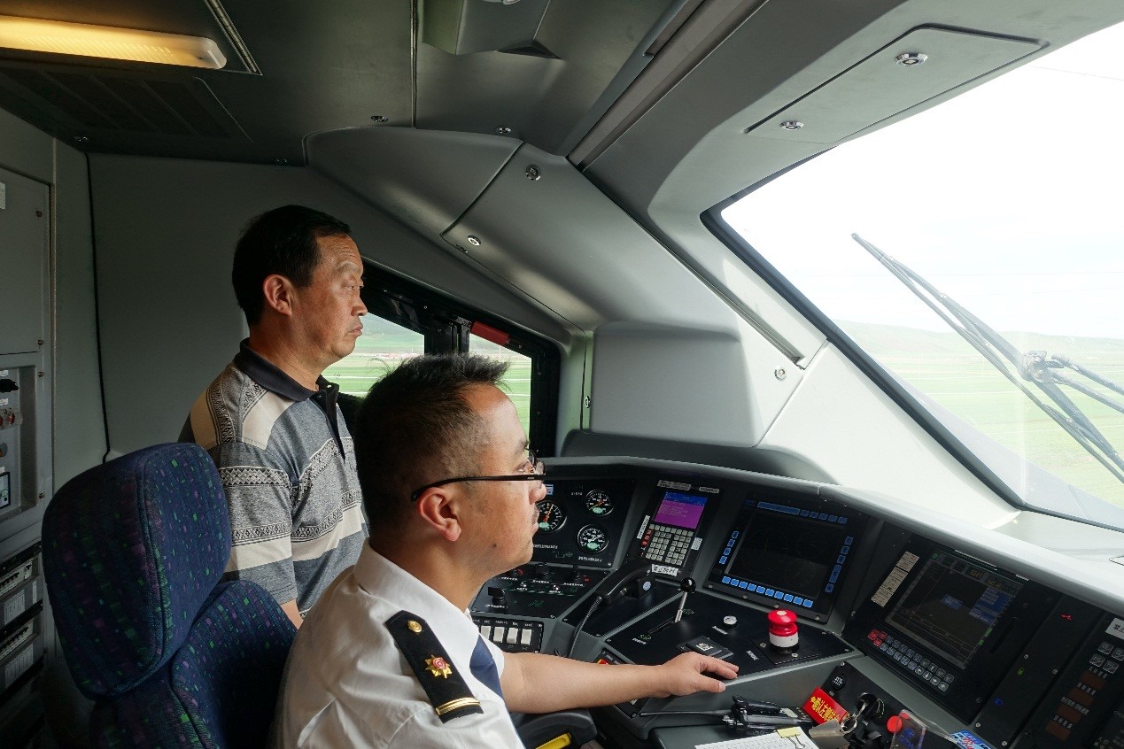 蘭州鐵路監管局添乘高鐵列車檢查蘭新高鐵沿線安全環境和防洪設施。