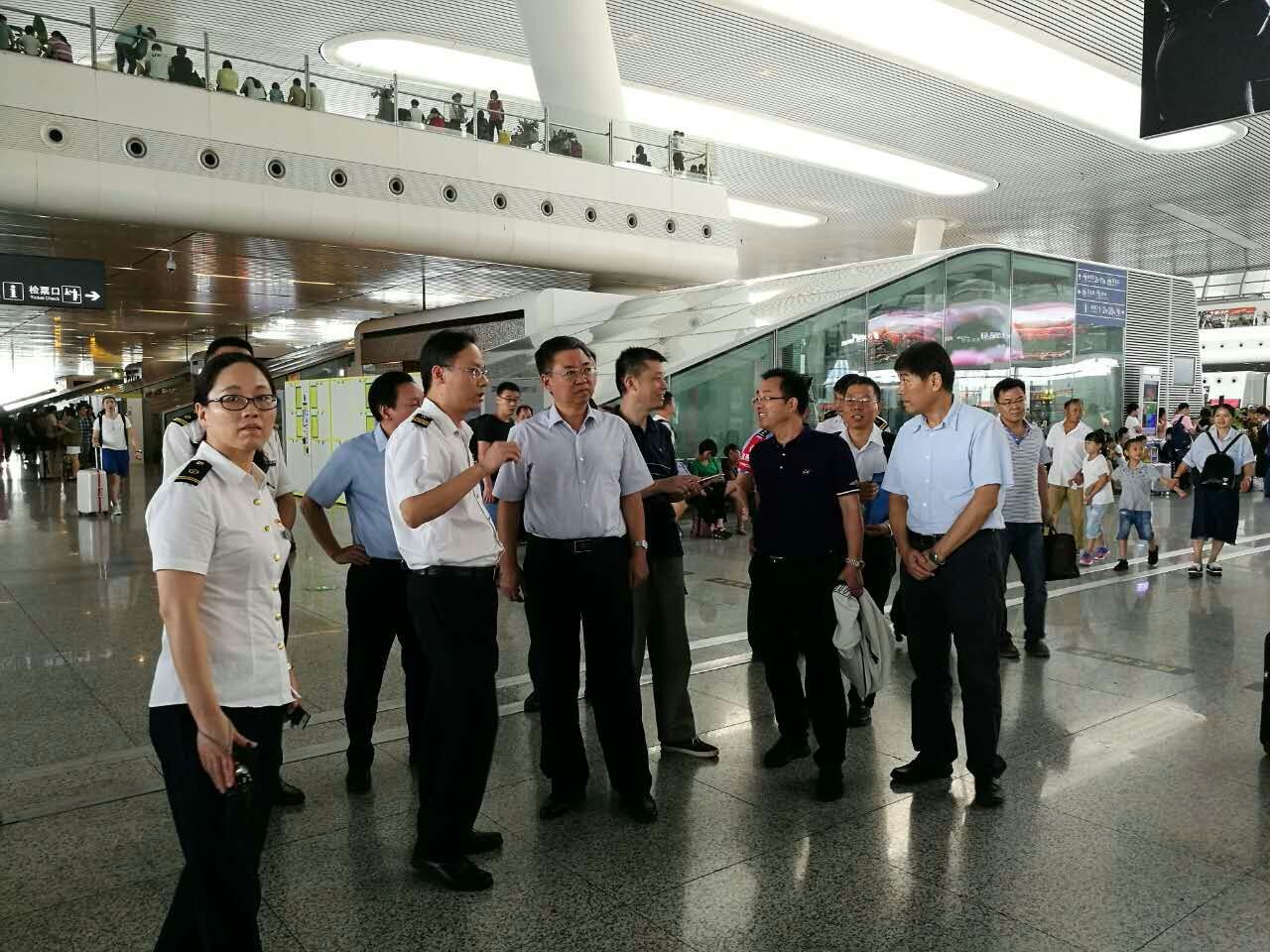 國家鐵路局黨組成員、副局長于春孝帶隊在杭州東站檢查旅客運輸安全工作。