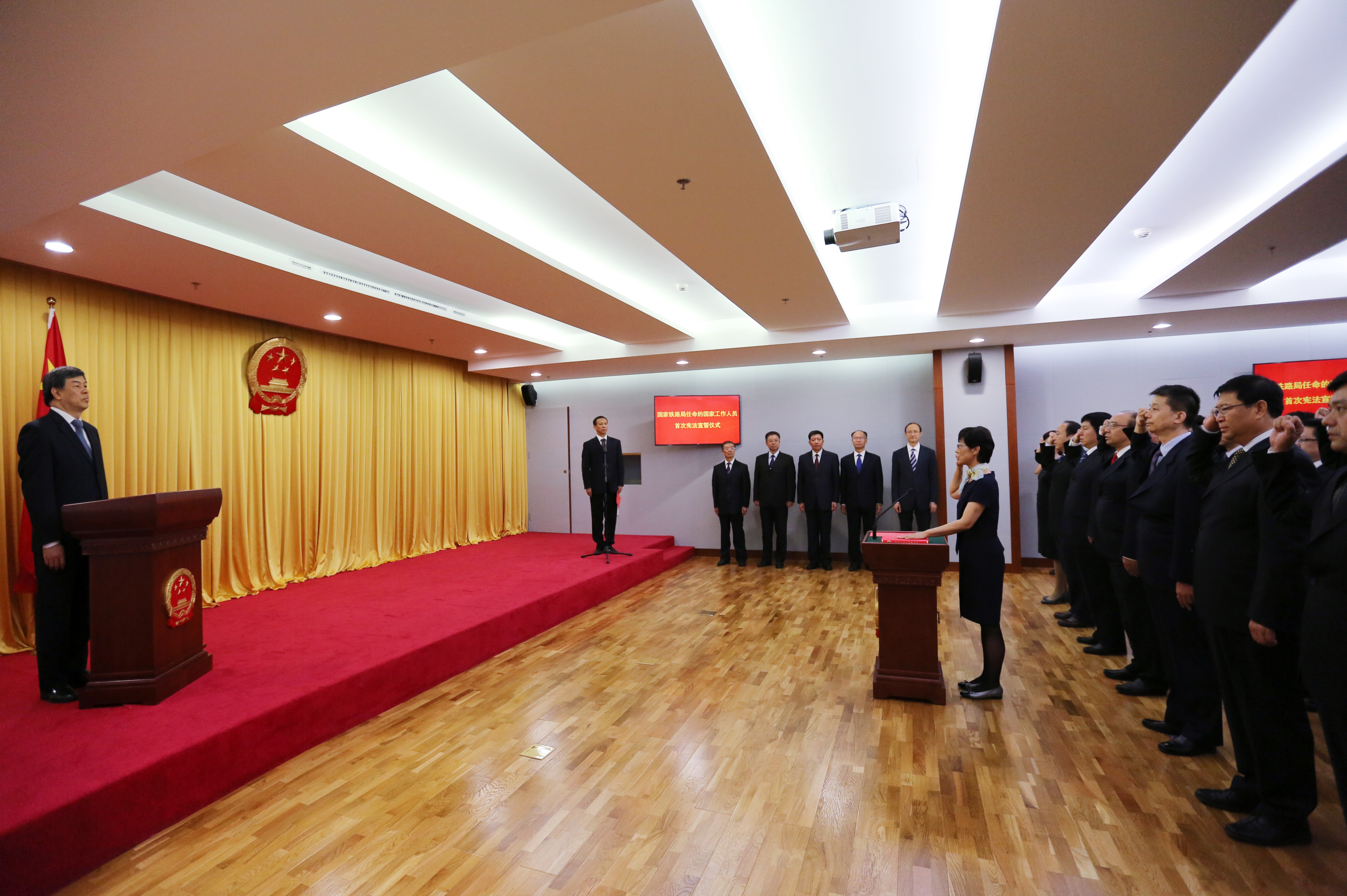 9月21日下午,國家鐵路局在局機關首次舉行憲法宣誓儀式,國家鐵路局局長陸東福監誓,局黨組成員參加儀式。今年以來國家鐵路局任命的處級以上干部,以及局總工程師、安全總監,局機關、各地區鐵路監管局、局屬事業單位處級以上領導干部代表,共150人依法進行憲法宣誓。
