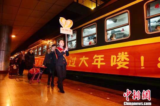 1月7日晚,西安開往西寧的K4099次列車緩緩從西安車站駛出,服務在陜返家回鄉(xiāng)的旅客。唐振江 攝